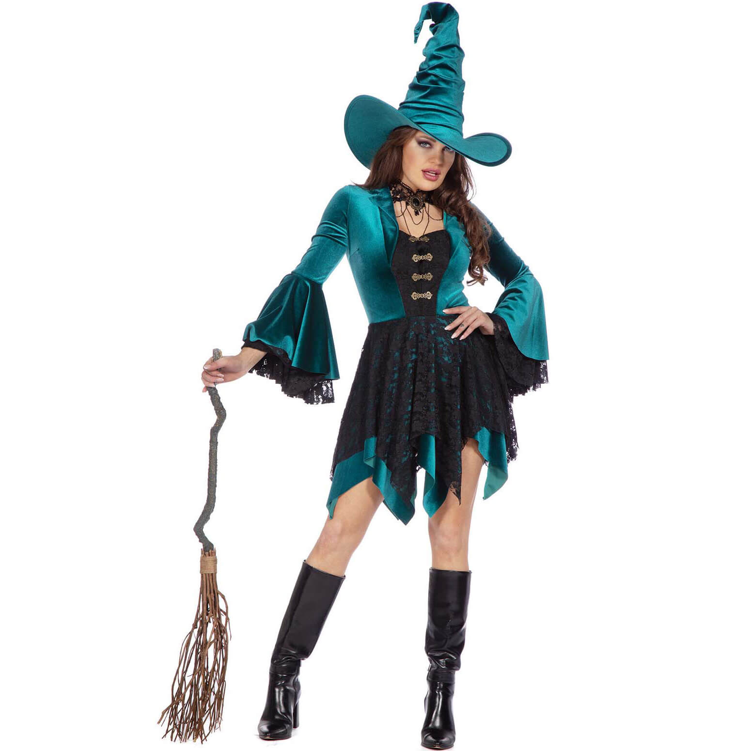 Hexen Zauberer Hexenhut aus Samt Superdeluxe passend zum Kleid dunkeltürkis