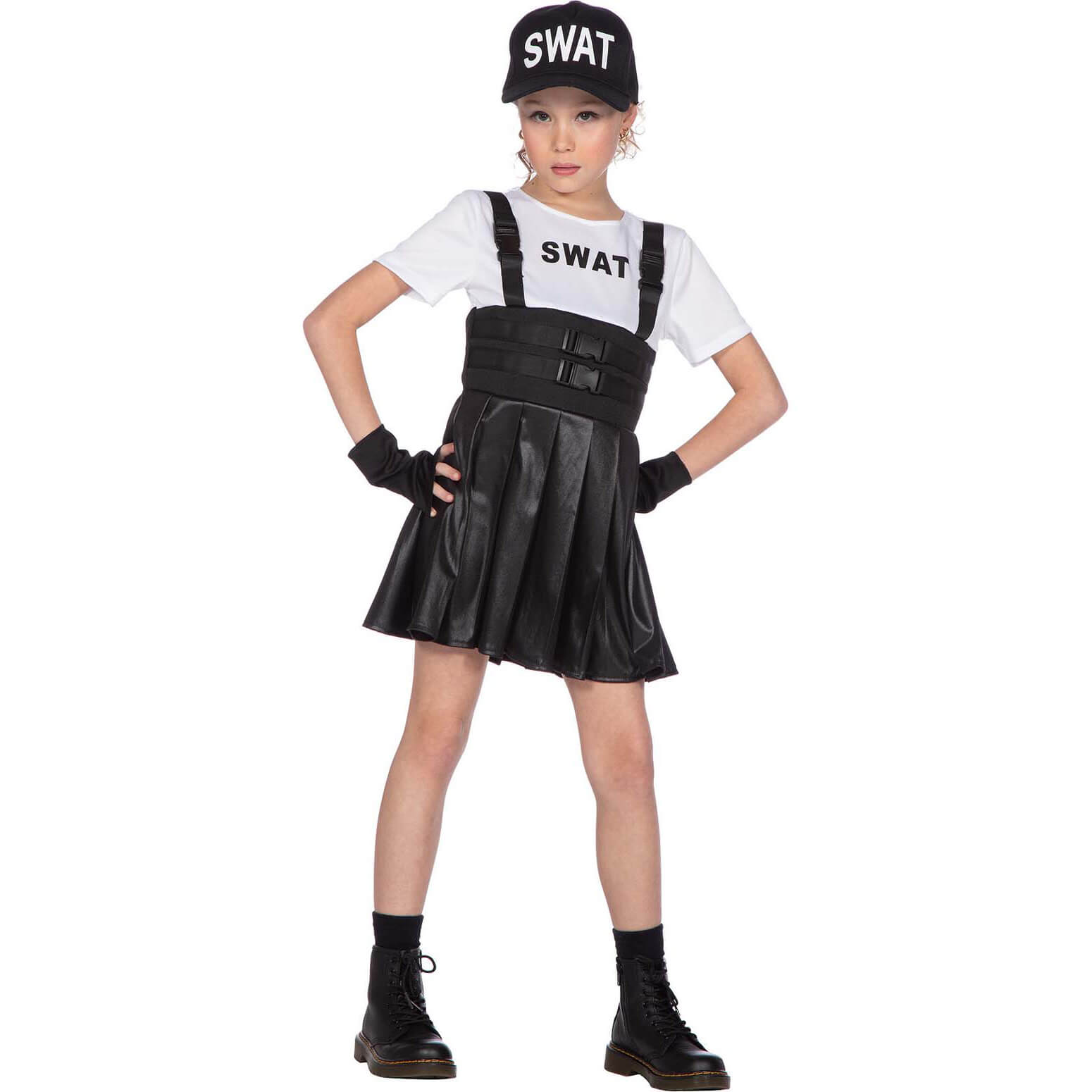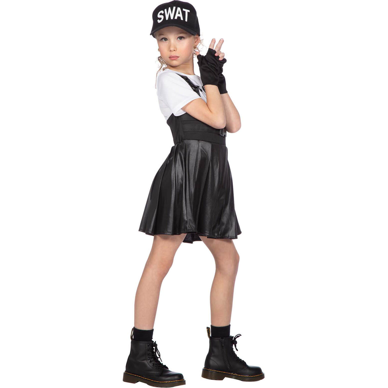 SWAT Mädchen Kinderkostüm Kleid kurz S.W.A.T. Deluxe mit Fanggurten schwarz-weiß