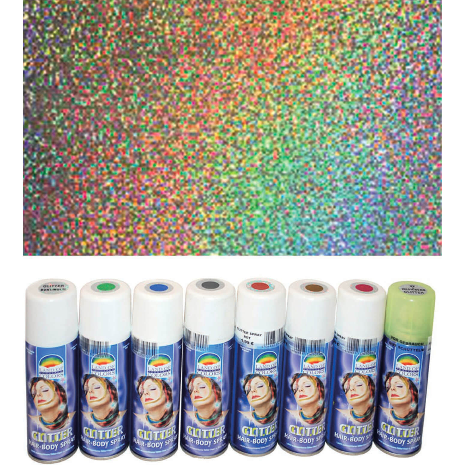 Haarspray und Bodyspray Glitzer metallic bunt