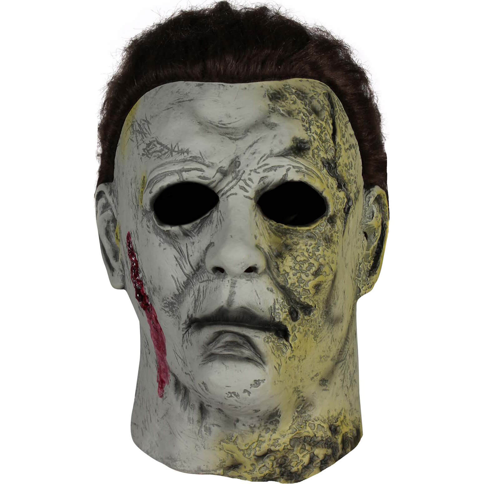 Horror Michael Latexmaske mit Haar blutverschmiert grau-braun
